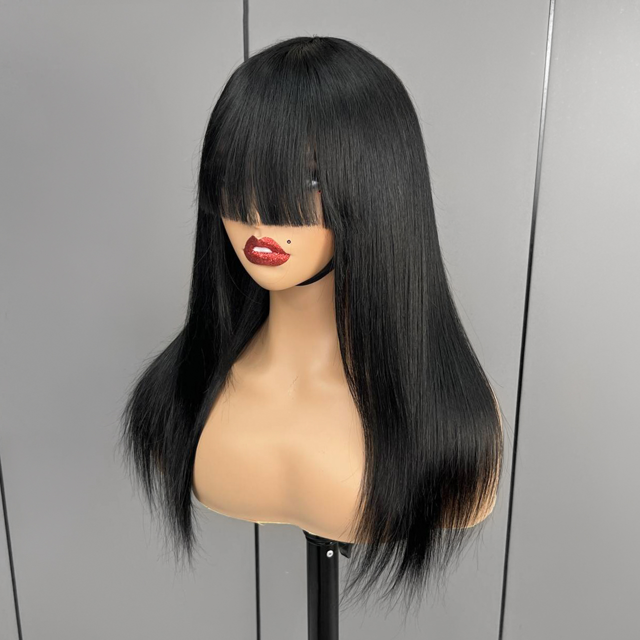 Machine Made Bob Wig with Bangs Short Human Hair Silky Straight Wigs
